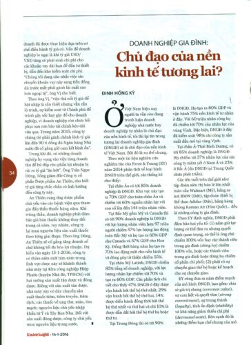 Article by Mr. Dinh Hong Ky, published in Saigon Economic Times on January 14, 2016. According to a serious research document by Ernst & Young (EY) in 2014 analyzing the type of family businesses in the world, statistics show that: In Europe, up to 85% of businesses are family businesses. This area generates 70% of GDP for the whole of Europe and accounts for 60% of human resources with a number of up to 144 million employees.