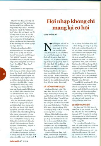 Article by Mr. Dinh Hong Ky, published in Saigon Economic Times on November 27, 2014. Human resource advantage? Everyone can see that Vietnam has a large population, mostly young people, and cheap labor. But the biggest obstacle that is often mentioned is the lack of skilled labor. In the regular meeting last September, Deputy Prime Minister Vu Duc Dam said that international organizations assessed that in Vietnam, 80% of office workers, 83% of technical workers and 40% of unskilled workers lack skills.