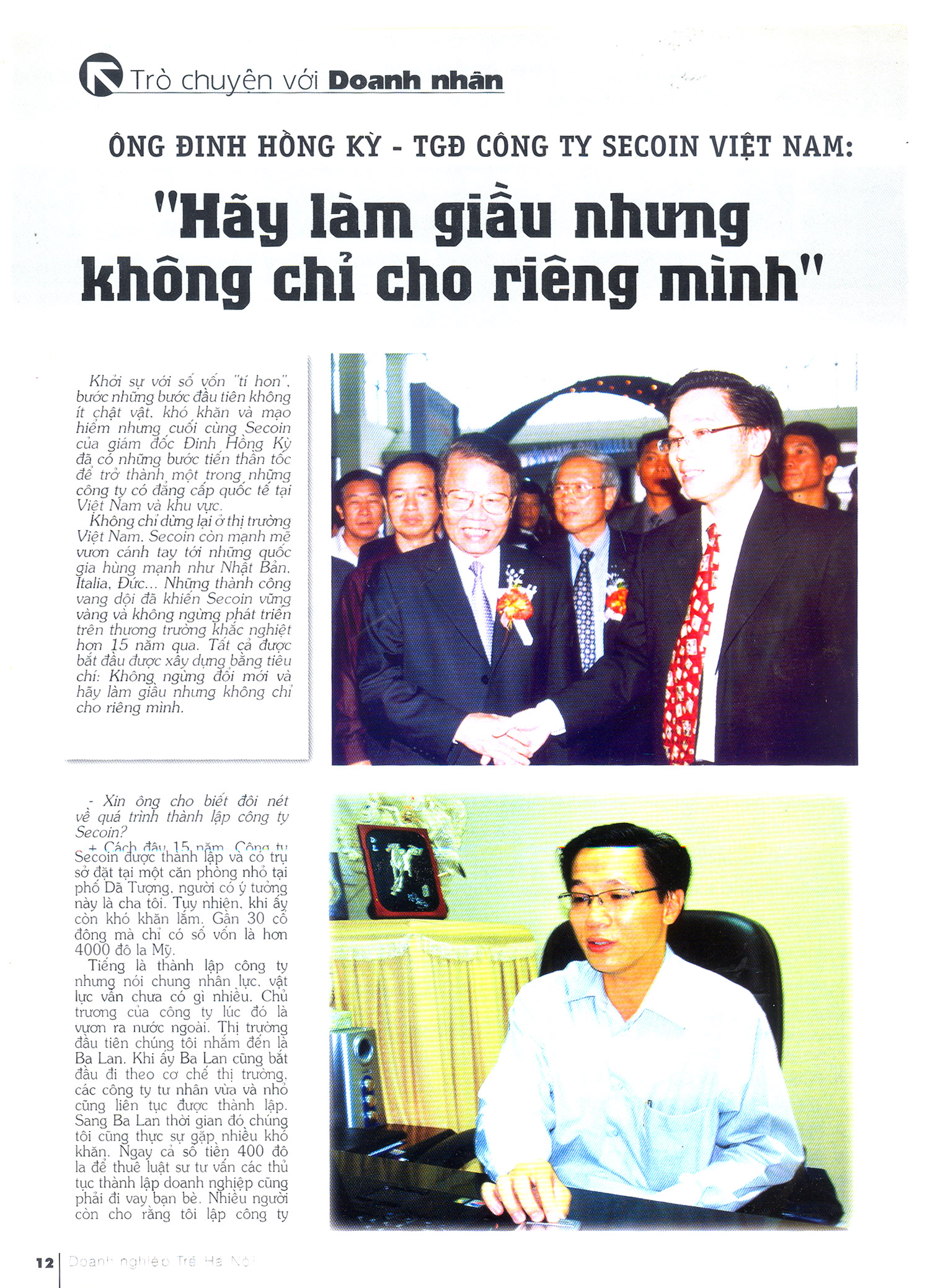 Starting with a “tiny” amount of capital and taking the first steps through a journey full of struggles, challenges, and risks, Mr. Đinh Hồng Kỳ’s Secoin has made remarkable strides to become one of the internationally recognized companies in Vietnam and the region.